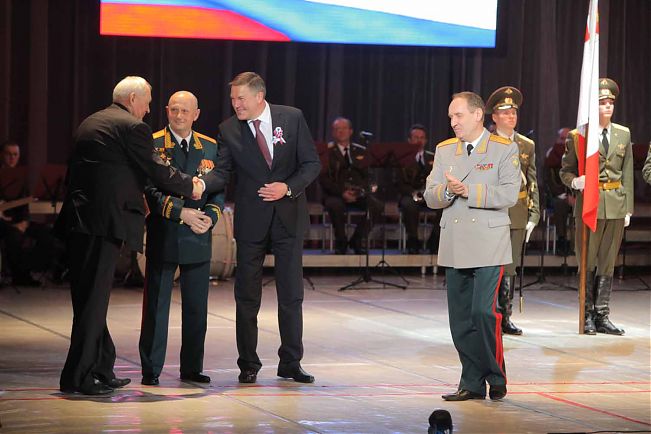 Во Дворце металлургов собрались офицеры и ветераны Вооруженных Сил, члены их семей. От имени Правительства Вологодской области защитников Родины поздравил Губернатор Олег Кувшинников.