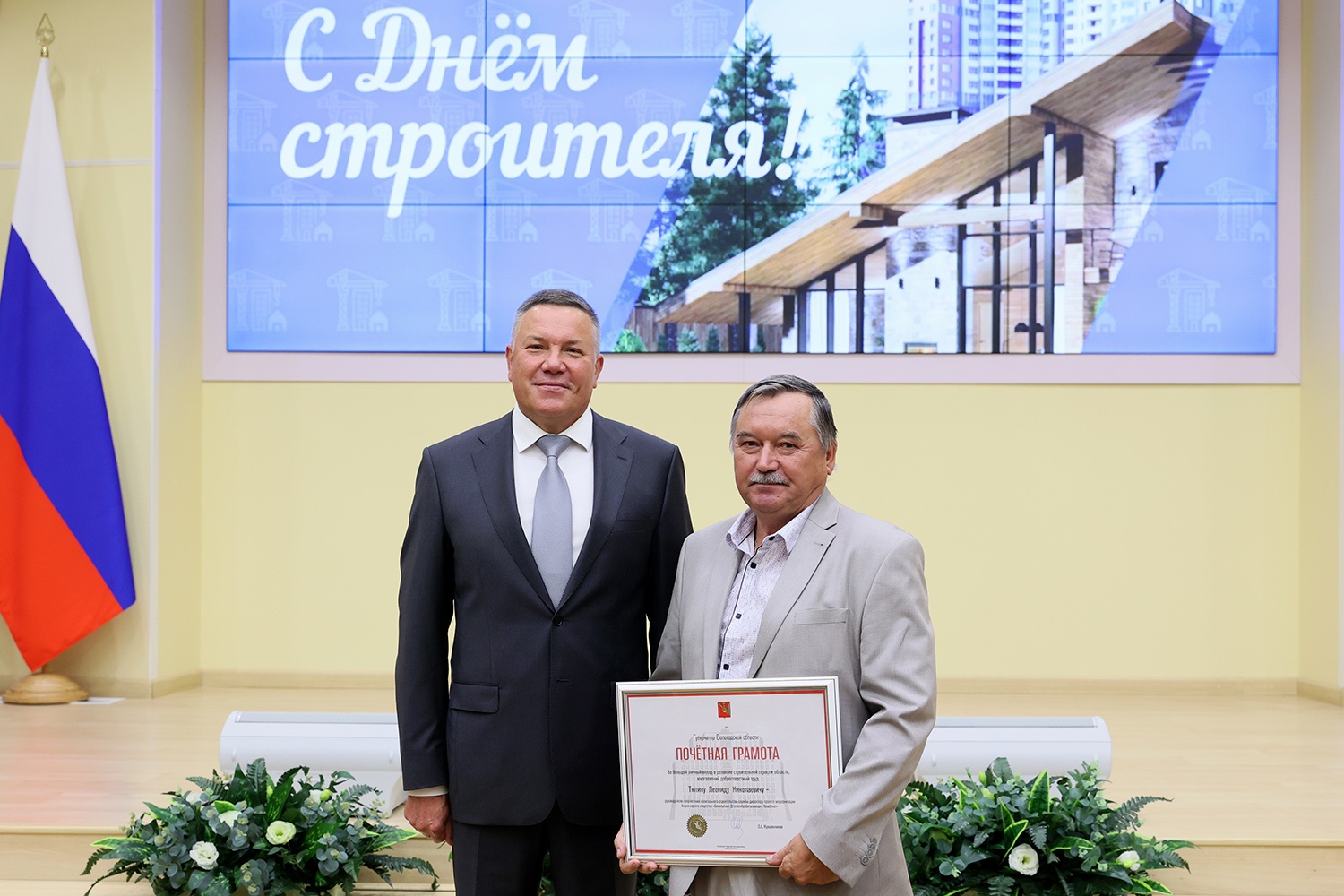 Накануне исторического события глава региона вручил награды монтажникам, слесарям, каменщикам, электросварщикам, штукатурам, бригадирам и руководителям предприятий. Почетной грамотой Губернатора награжден сокольчанин Леонид Тютин, который почти за полвека прошел все ступени от мастера, прораба, начальника участка до главного инженера, несколько лет назад возглавил отдел капитального строительства Сокольского деревообрабатывающего комбината.
