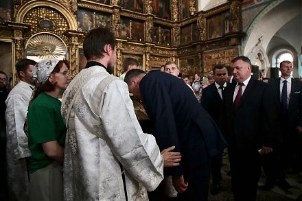 К службе вместе с сотнями верующих присоединились Полномочный представитель Президента РФ в Северо-Западном федеральном округе Александр Беглов и Губернатор Вологодской области Олег Кувшинников.