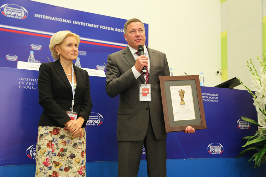 Награды глава Вологодчины Олег Кувшинников получил сегодня из рук вице-премьера Ольги Голодец в рамках Международного инвестиционного форума «Сочи-2015».