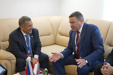 Сегодня в рамках Петербургского международного экономического форума состоялась встреча Губернатора области Олега Кувшинникова с временно исполняющим обязанности Президента Республики Татарстан Рустамом Миннихановым. Стороны подписали Соглашение о сотрудничестве двух регионов.