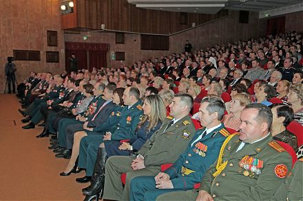 Во Дворце металлургов собрались офицеры и ветераны Вооруженных Сил, члены их семей. От имени Правительства Вологодской области защитников Родины поздравил Губернатор Олег Кувшинников.