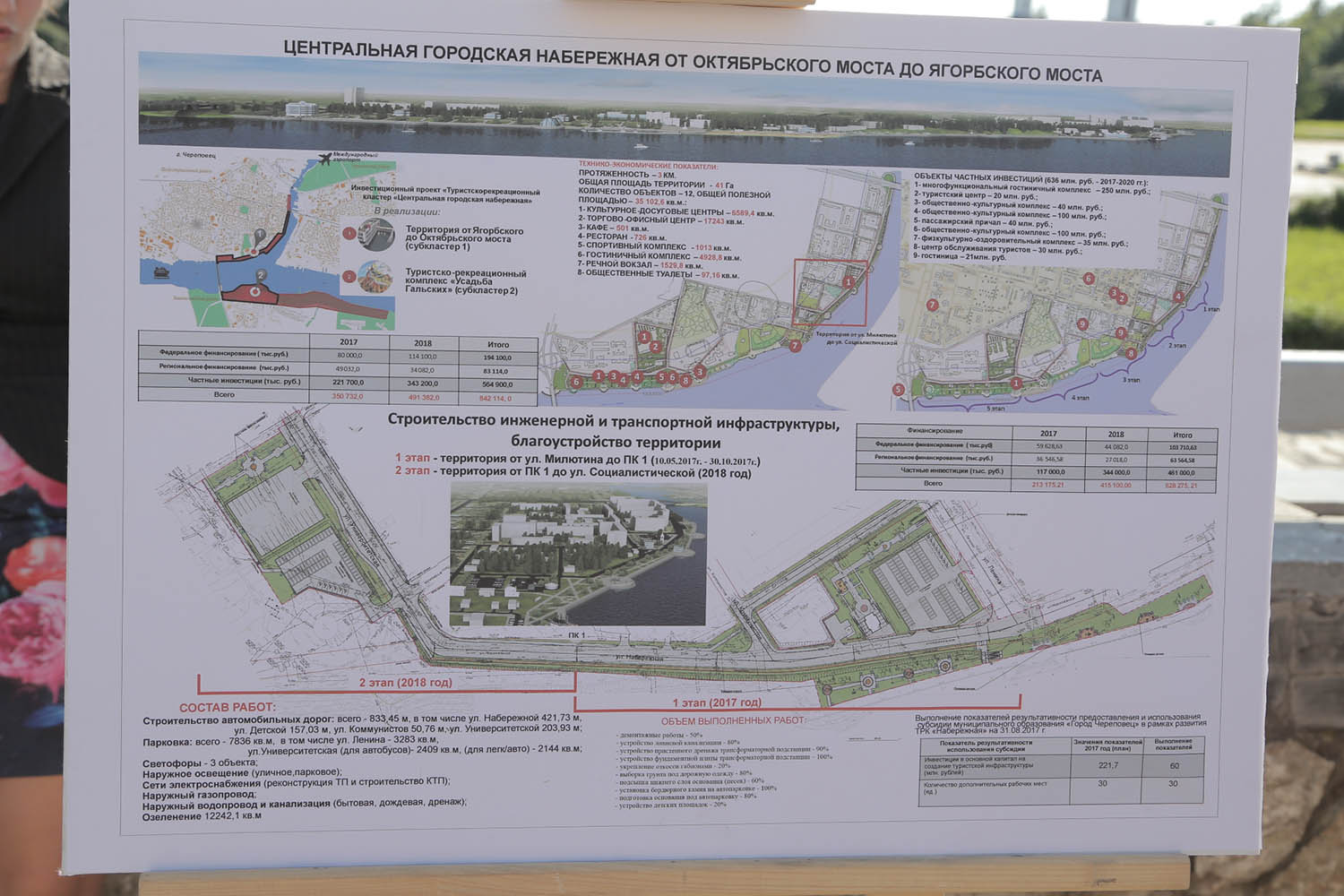 В рамках проекта планируется комплексное развитие площади у ДК "Металлургов", благоустройство территории парка Победы, обустройство центральной набережной от Октябрьского до Ягорбского моста и развитие прибрежных территорий.