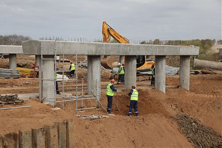 «Мост будет состоять из двух частей – левой и правой. Сооружение опор завершено на 90%, в ближайшее время начнется монтаж балок пролетного строения. Подпорные стены будут сооружаться в течение этого года, а проезд, мостовое полотно и элементы обустройства будут закончены в 2023 году. К работам на объекте привлечено порядка 40 человек», – поделилсядиректор компании «Строймост» Андрей Валдаев.