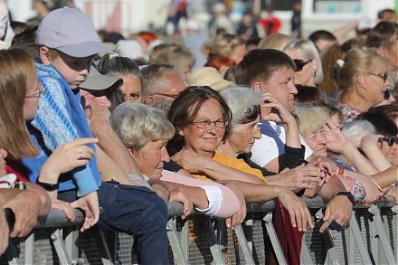Грандиозное по своему размаху мероприятие началось в 15.30 на сцене, установленной в створе улицы Архангельской перед въездом на новый мост через реку Шексну. Официальную часть открыли представители Правительства России и Губернатор области Олег Кувшинников. Она стартовала под конец рабочего дня, в 17.00. К этому времени на импровизированной концертной площадке уже собрались десятки тысяч череповчан.