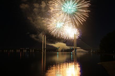 В 22:00 состоится праздничный фейерверк в исполнении лучших пиротехников страны. Более 2000 залпов будут в небе над Череповцом. После будет зажжена архитектурная подсветка моста. Трансляция с концерта доступна в группе Губернатора Вологодской области Олега Кувшинникова в социальной сети «ВКонтакте».